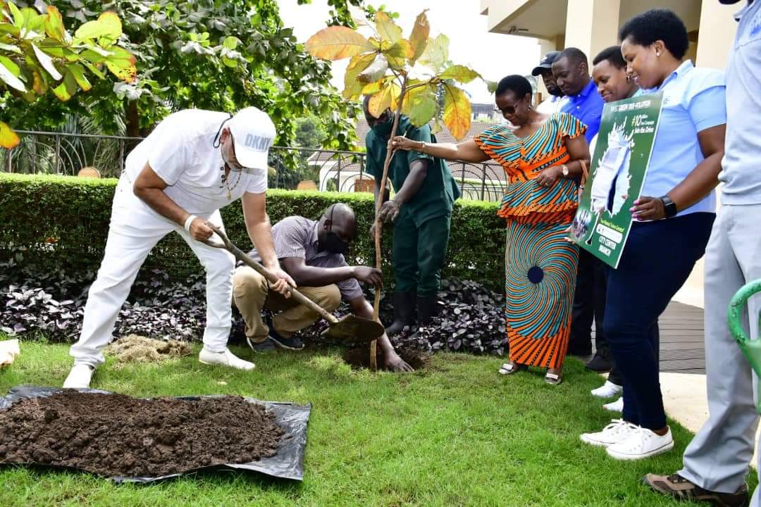 Former Speaker of Parliament Rebecca Kadaga also joined the campaign and a number of trees were planted at her home in Muyenga.
